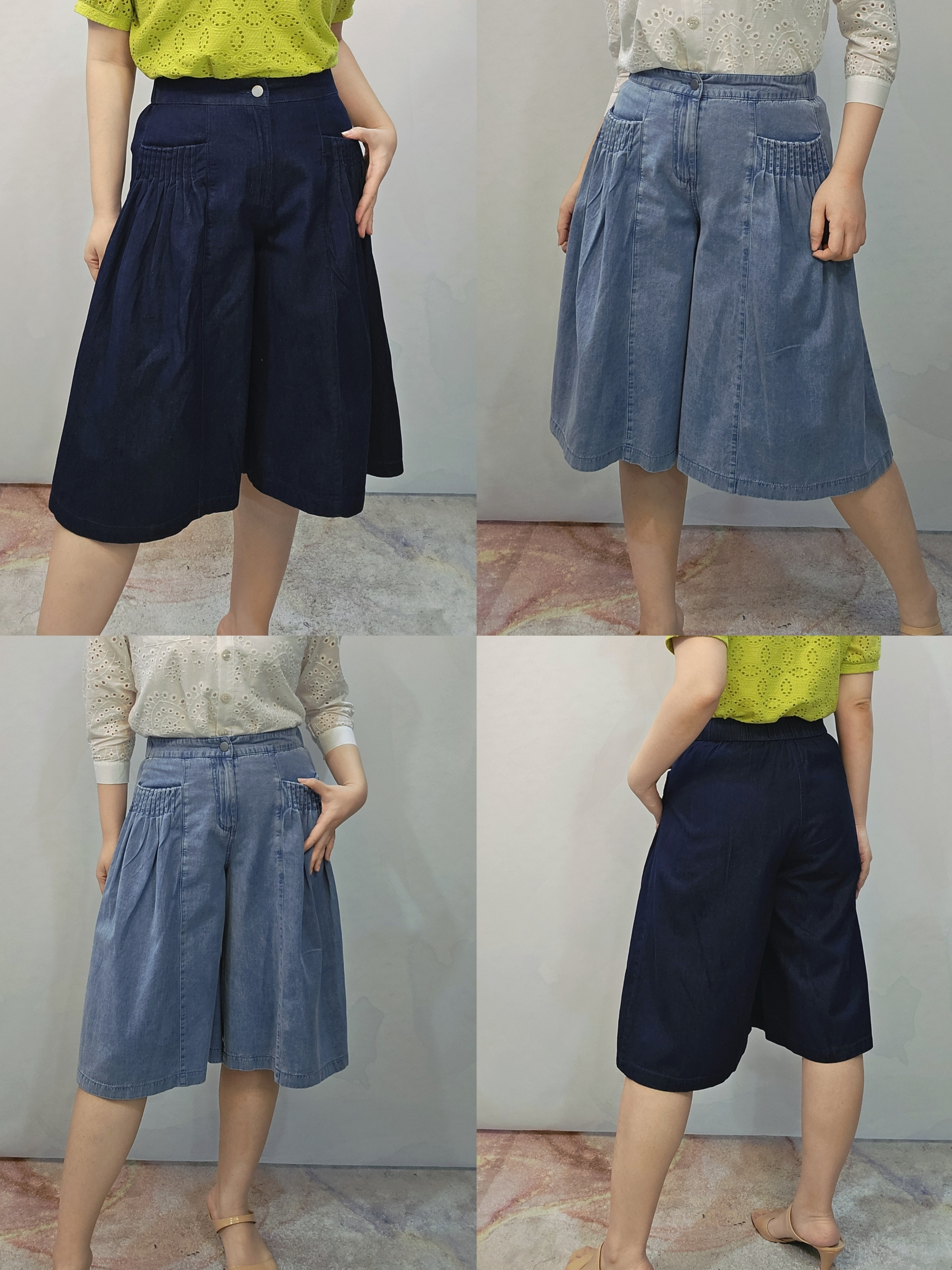 EBF80236 Duo Color Lightweight Denim Palazzo