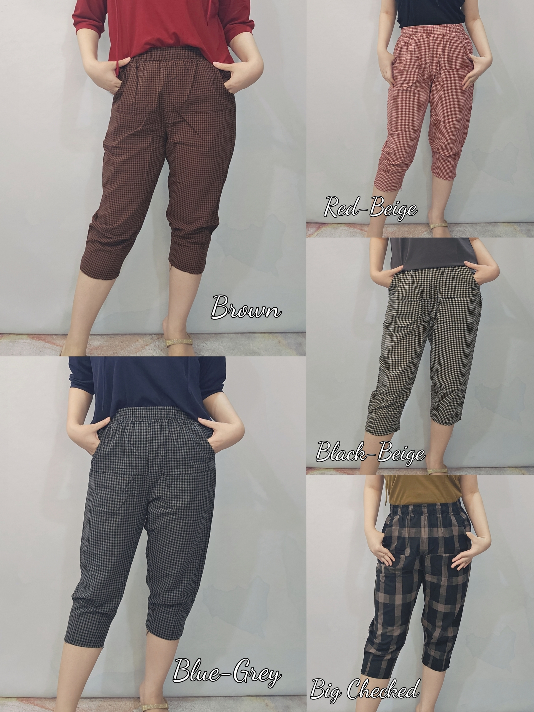 EBP23315 Mixed Checkered Roma Cropped Pants