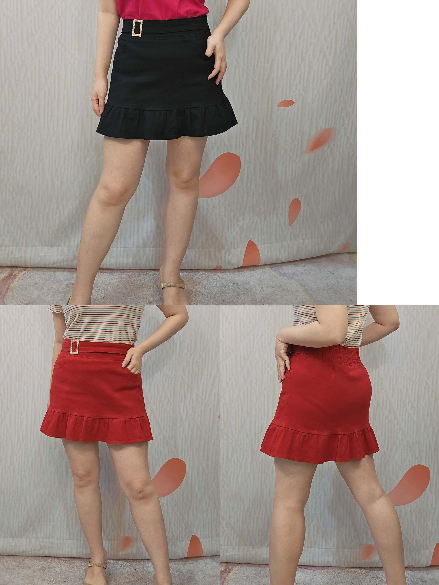 EBS11075 Chic CNY Scalloped Hemline Stretch Skirt Pants